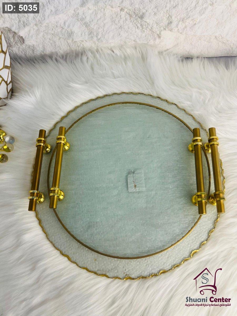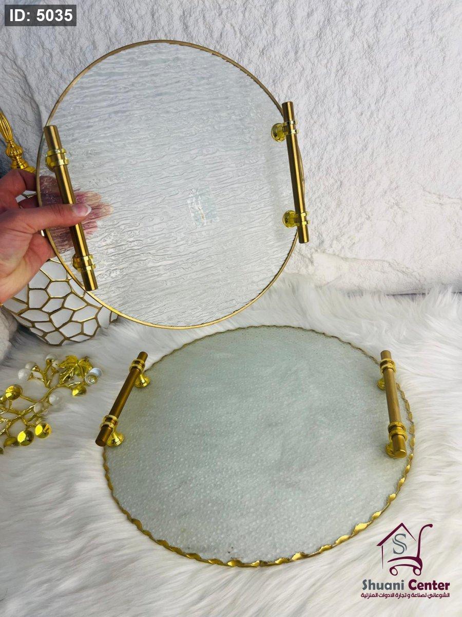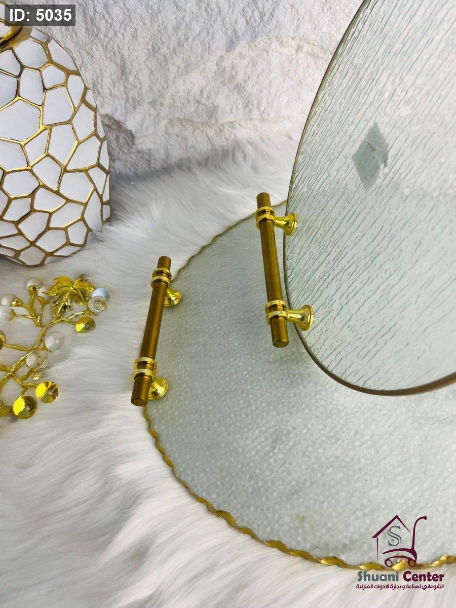 صواني تقديم زجاجية دائرية باطار ذهبي مميز وانيق وراقي جدا لاصحاب الذوق الرفيع