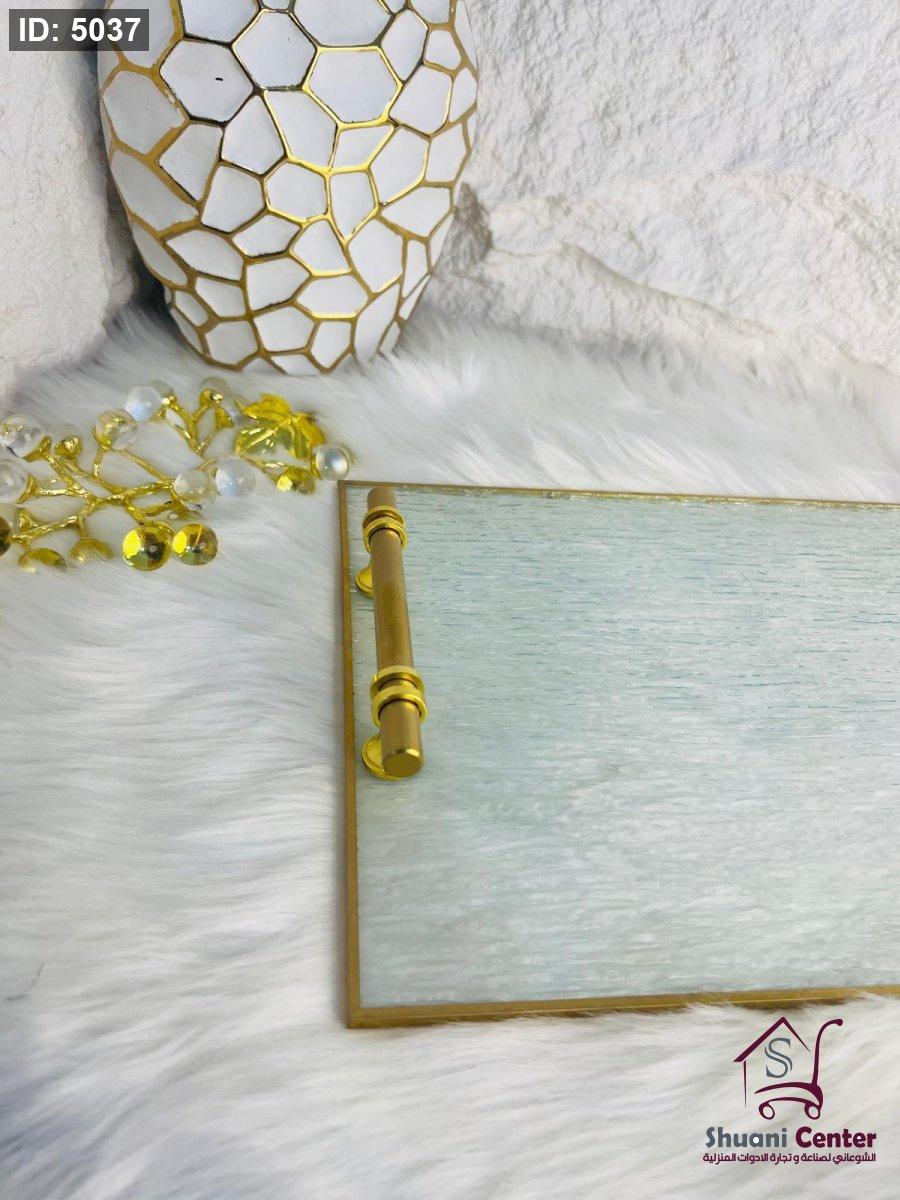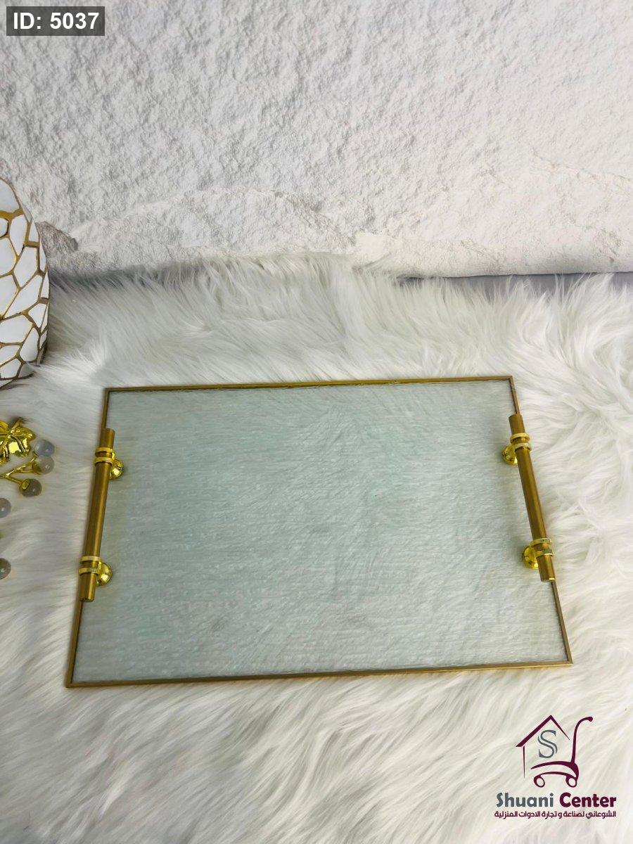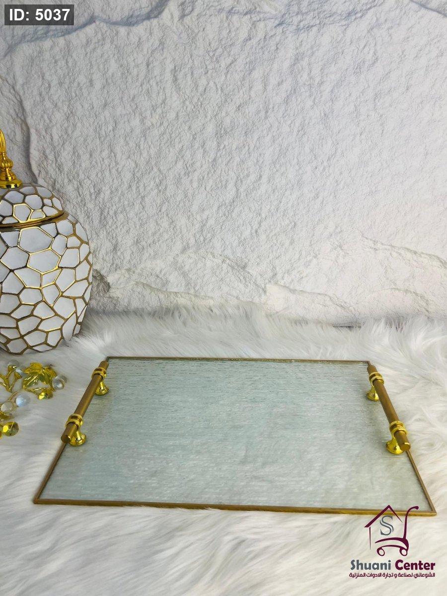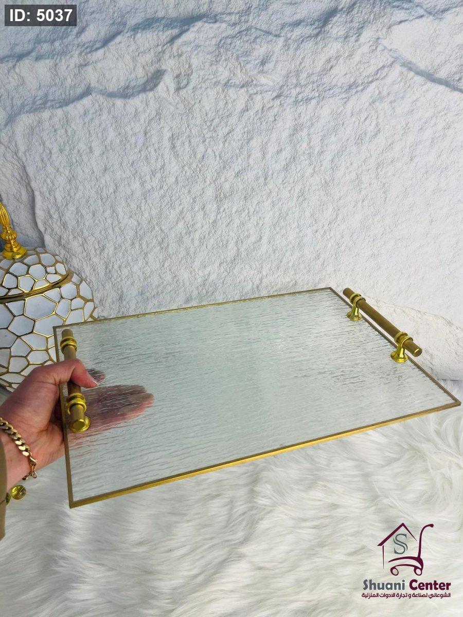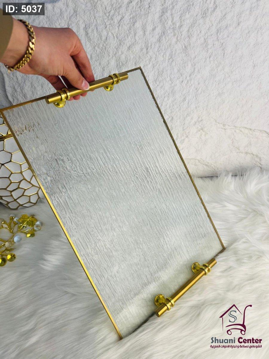 طقم صنية تقديم زجاجية مستطيلة باطار ذهبي مميز وانيق وراقي جدا لاصحاب الذوق الرفيع