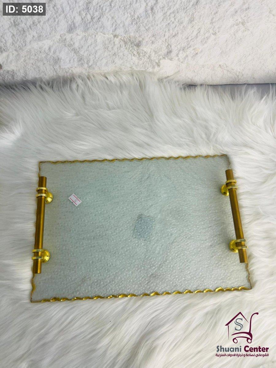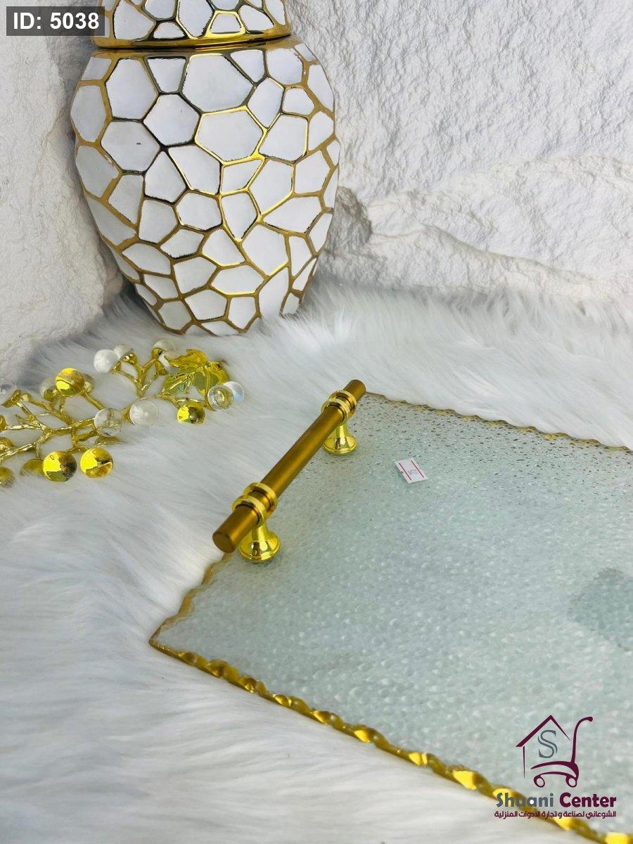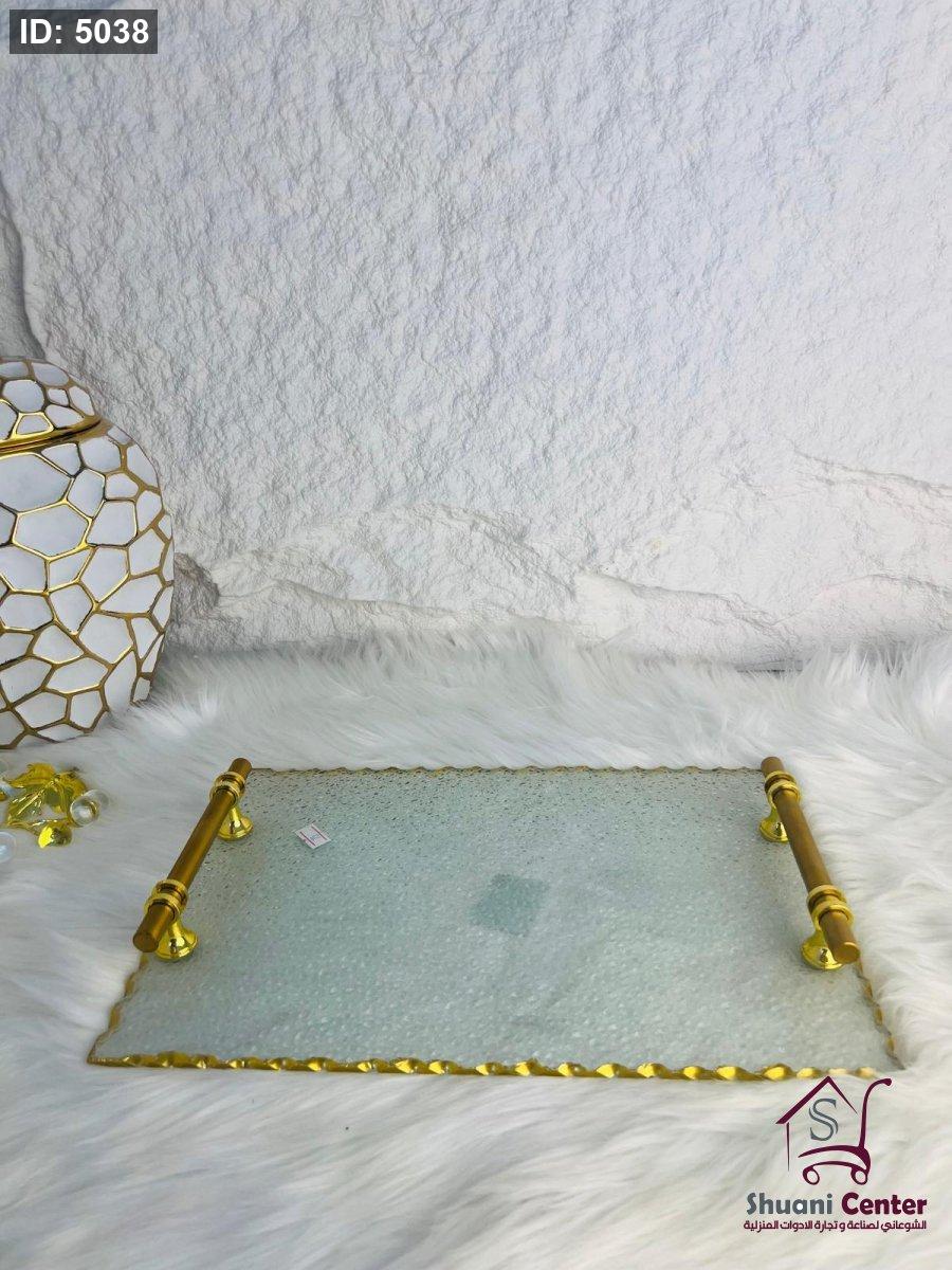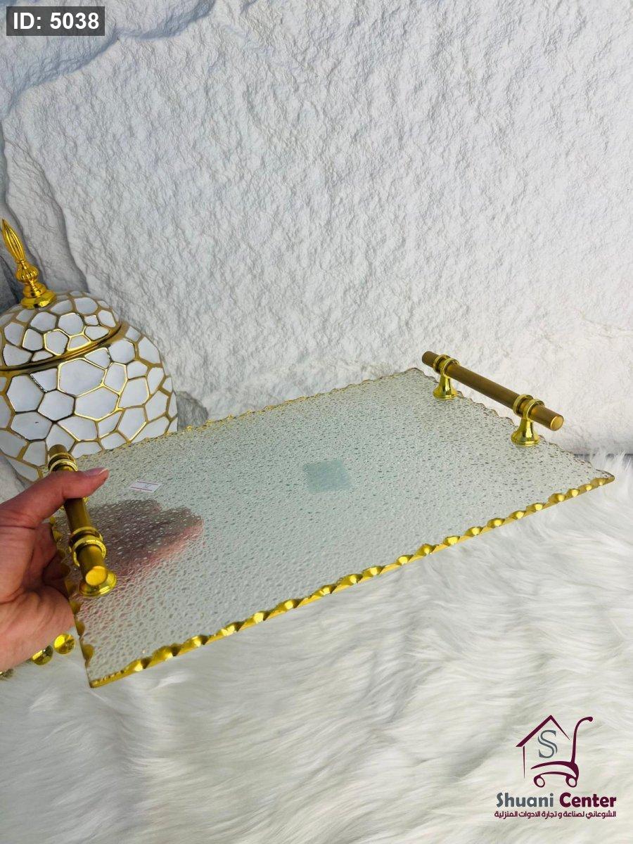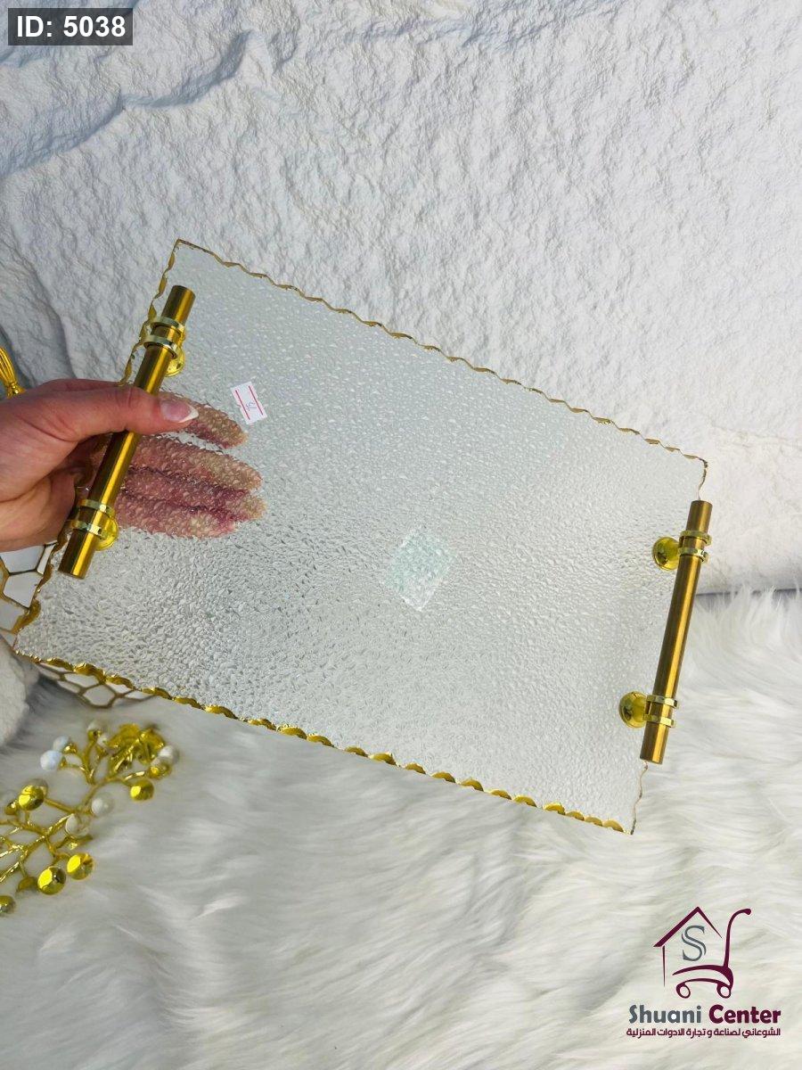 طقم صنية تقديم زجاجية باطار ذهبي مميز وانيق وراقي جدا لاصحاب الذوق الرفيع