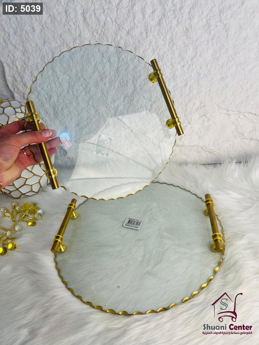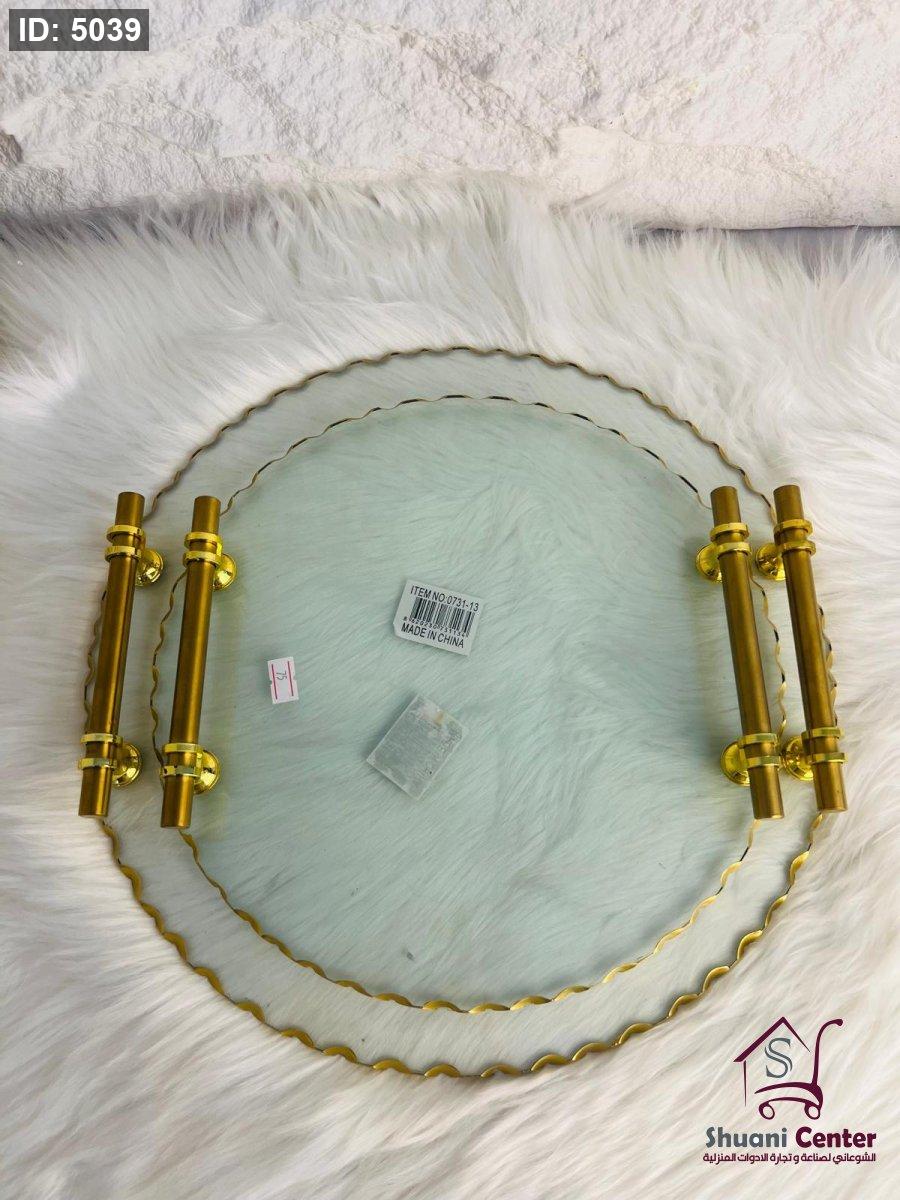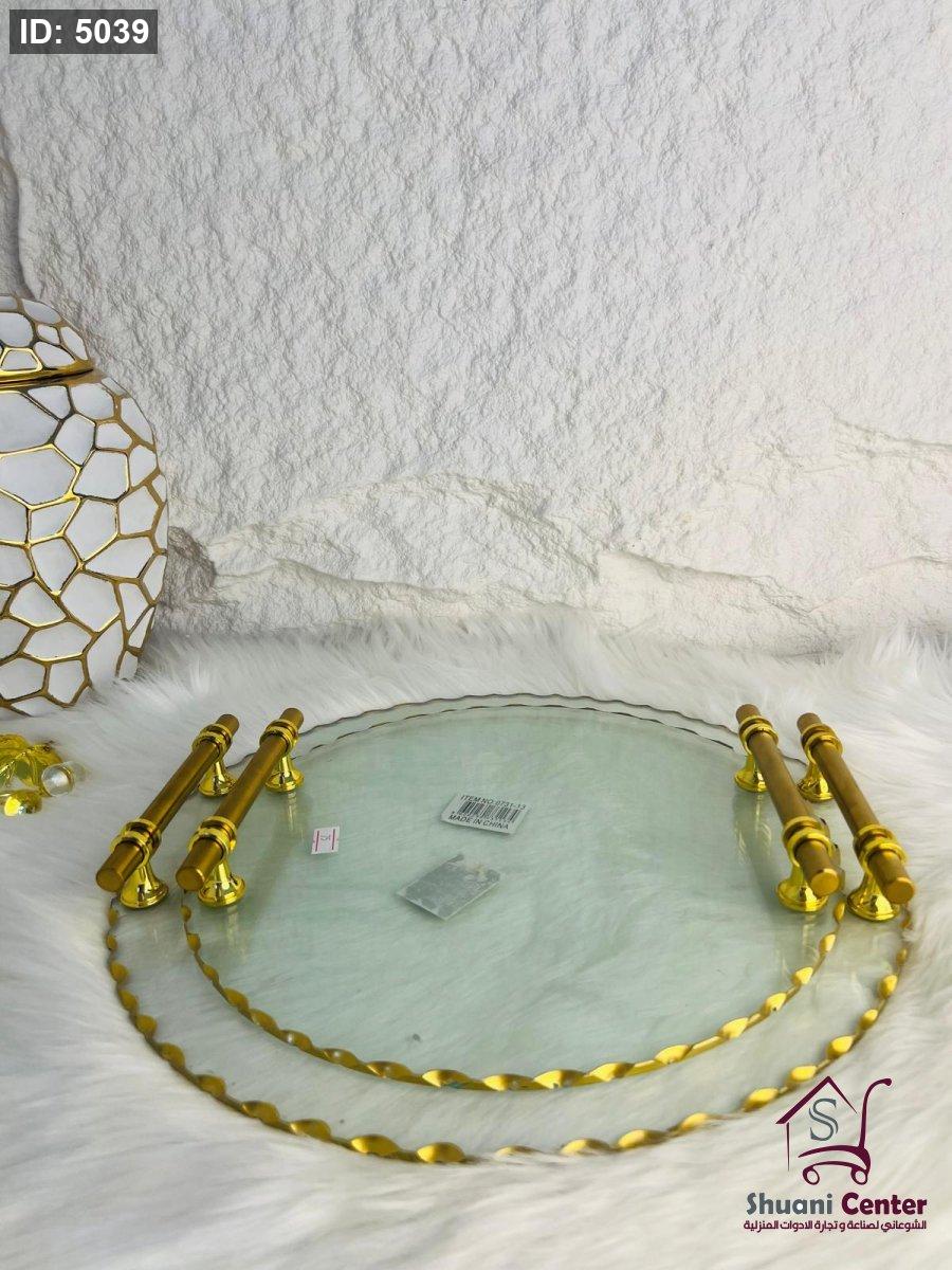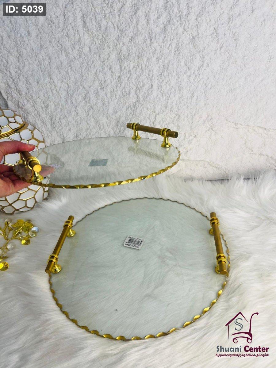 طقم صواني تقديم زجاجية باطار ذهبي مميز وانيق وراقي جدا لاصحاب الذوق الرفيع