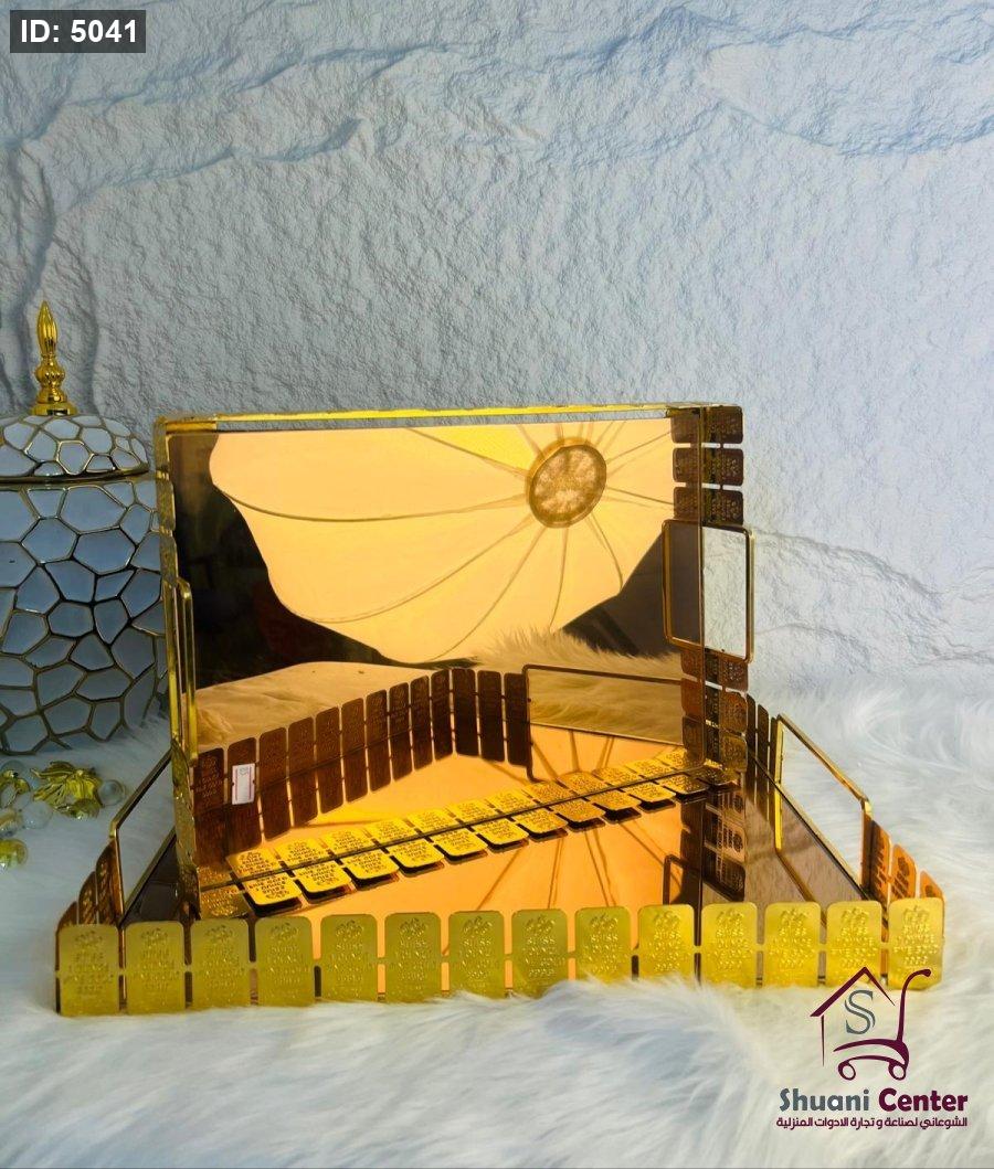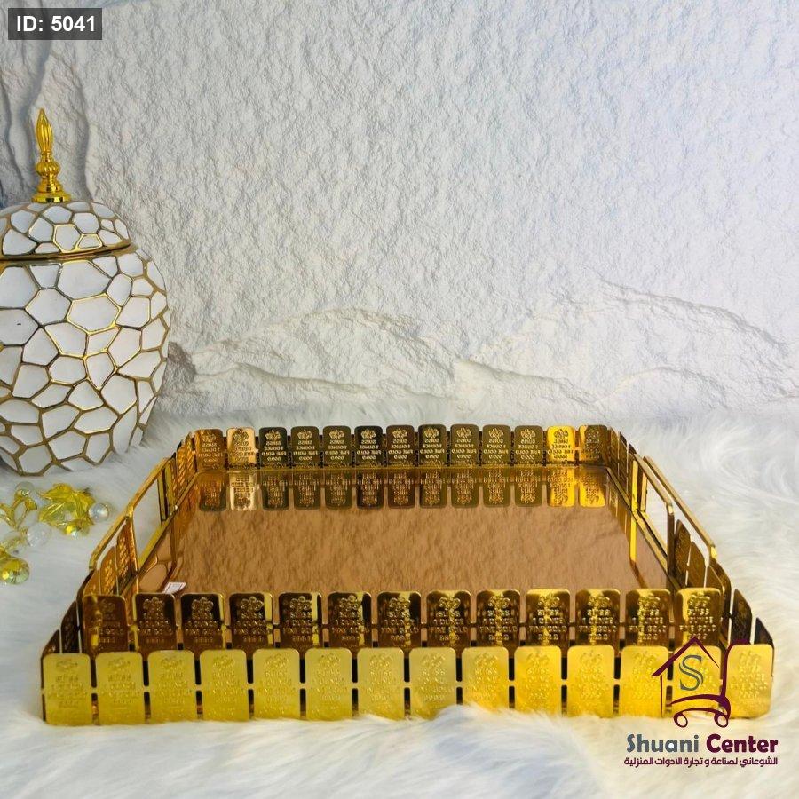 صنية زجاجية ذهبية فخمة وأنيقة لاصحاب الذوق الرفيع