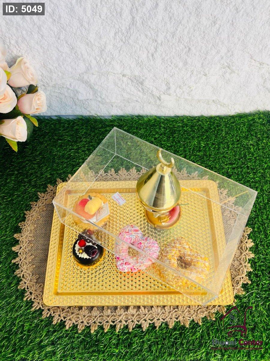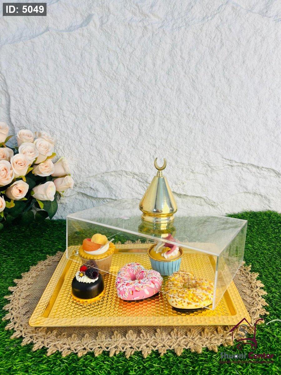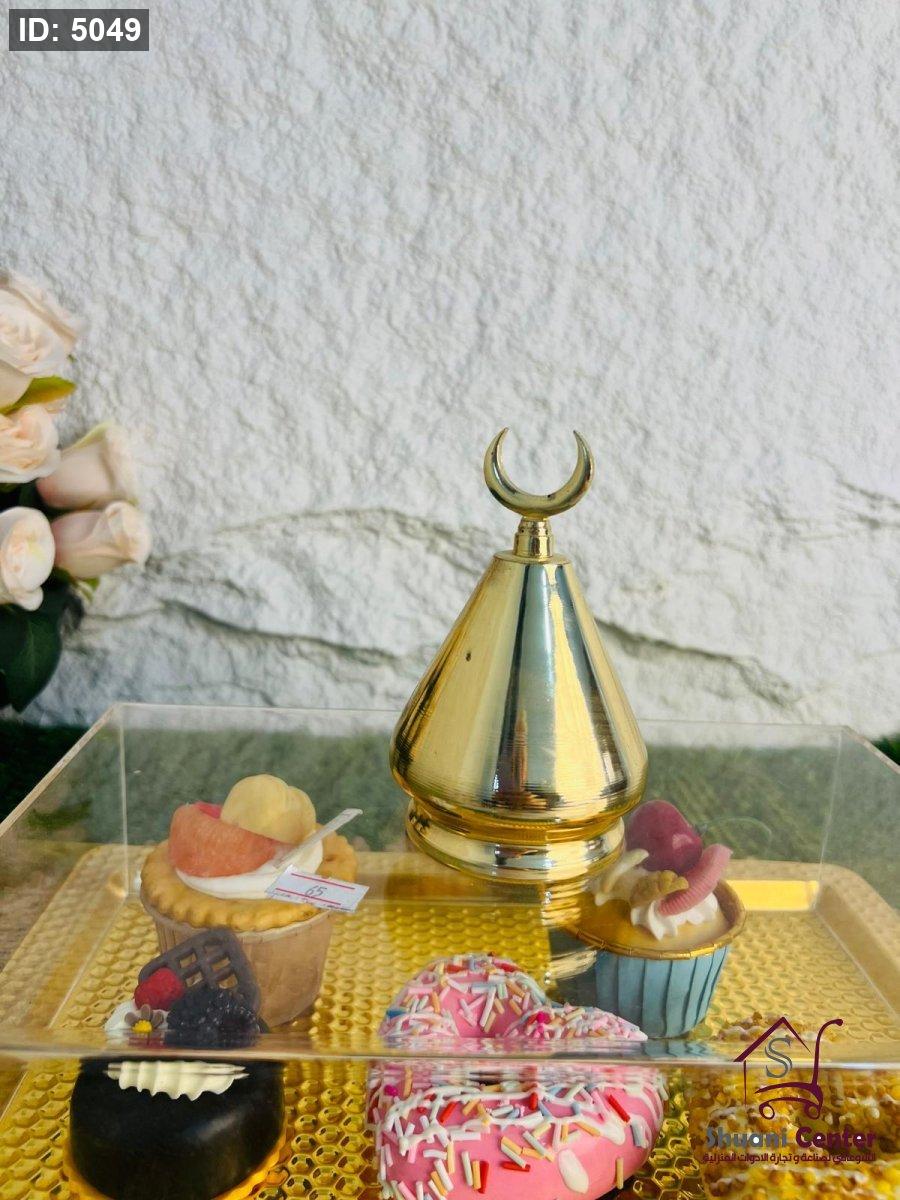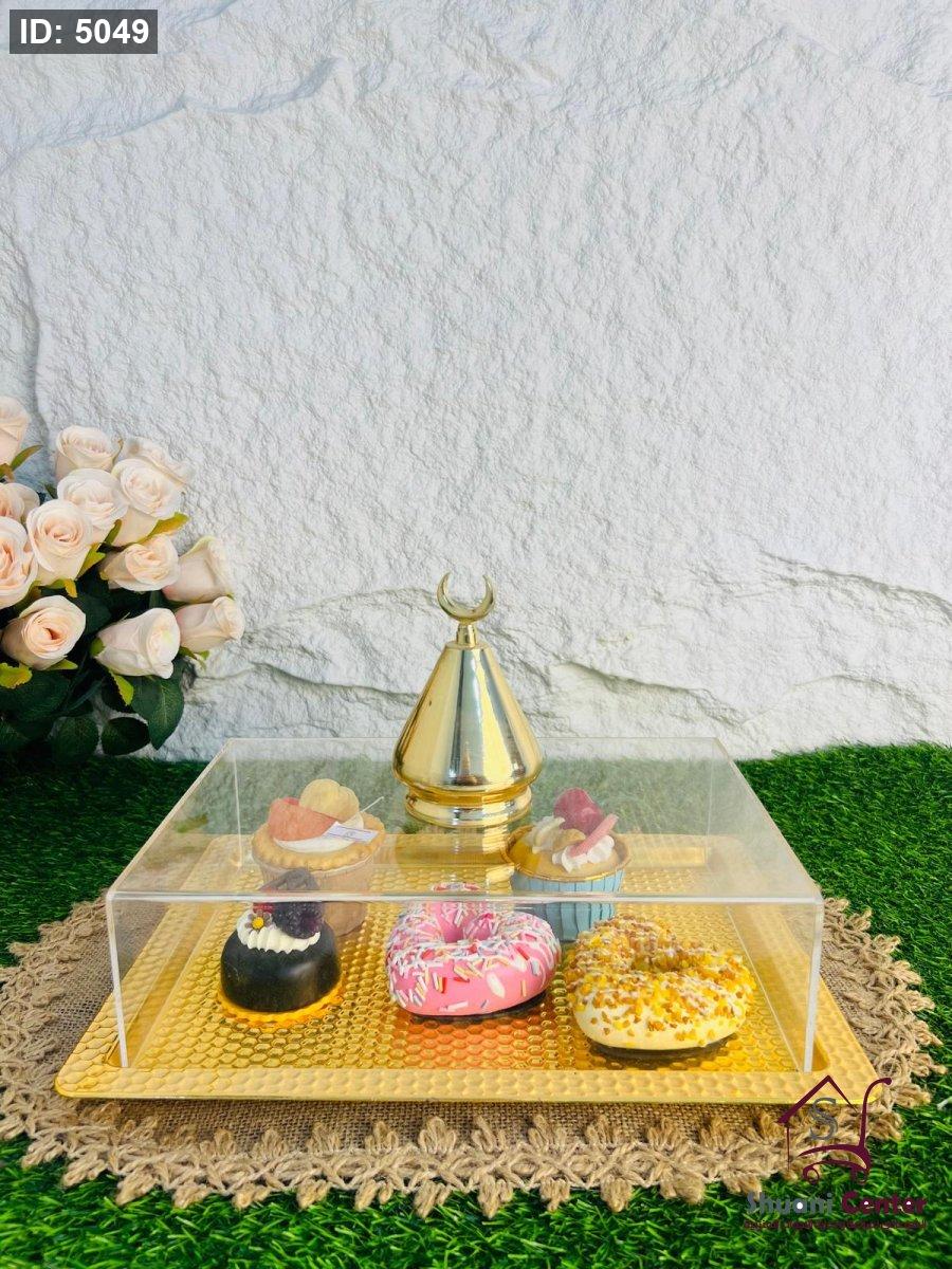 مضيفة بصينية ذهبية حديدية وغطاء اكريليك مميزة وانيقة وفخمة واضافة جميلة لبيتك