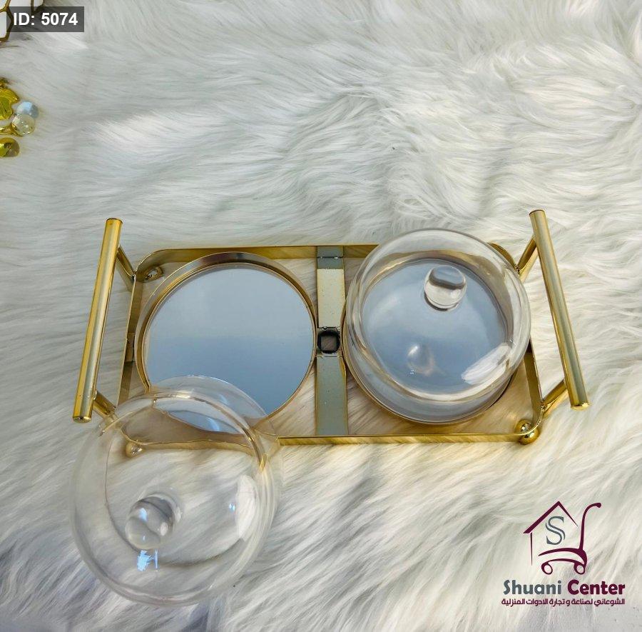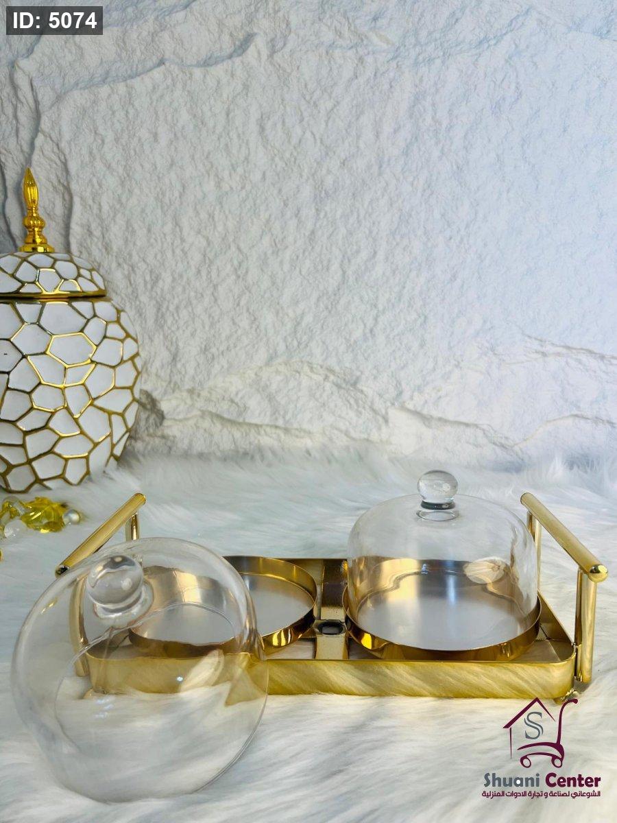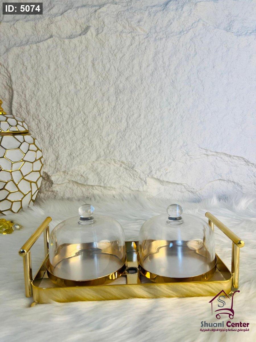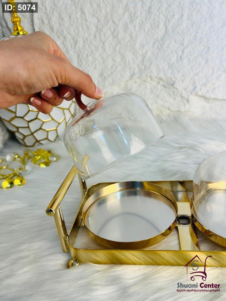 مضيفة ذهبية مكونة من وحدتين بغطاء زجاجي ثقيلة وفخمة