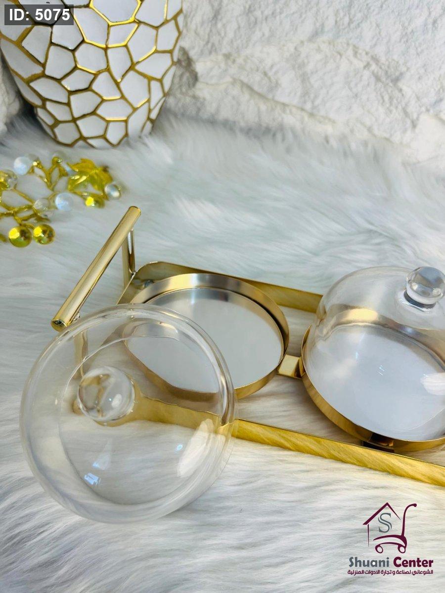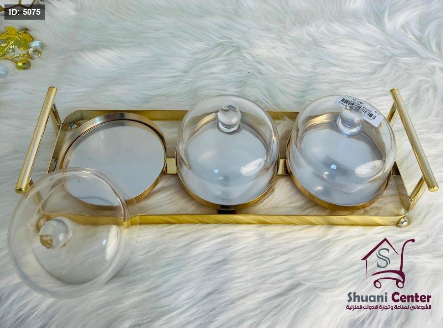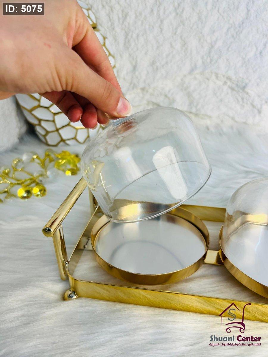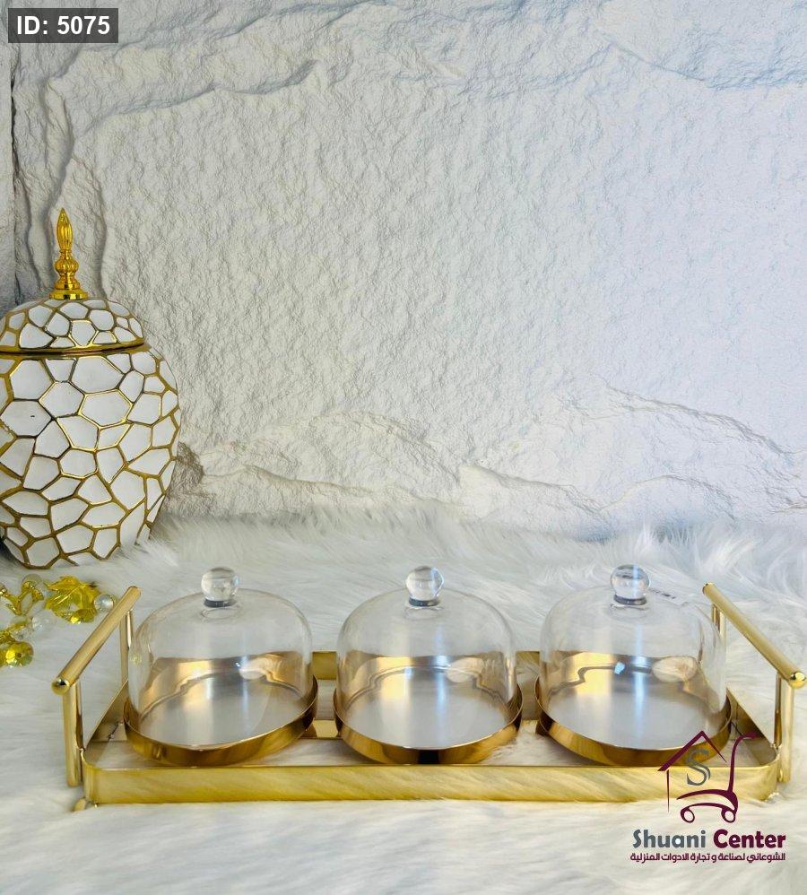 مضيفة ذهبية مكونة من و3 وحدات بغطاء زجاجي ثقيلة وفخمة