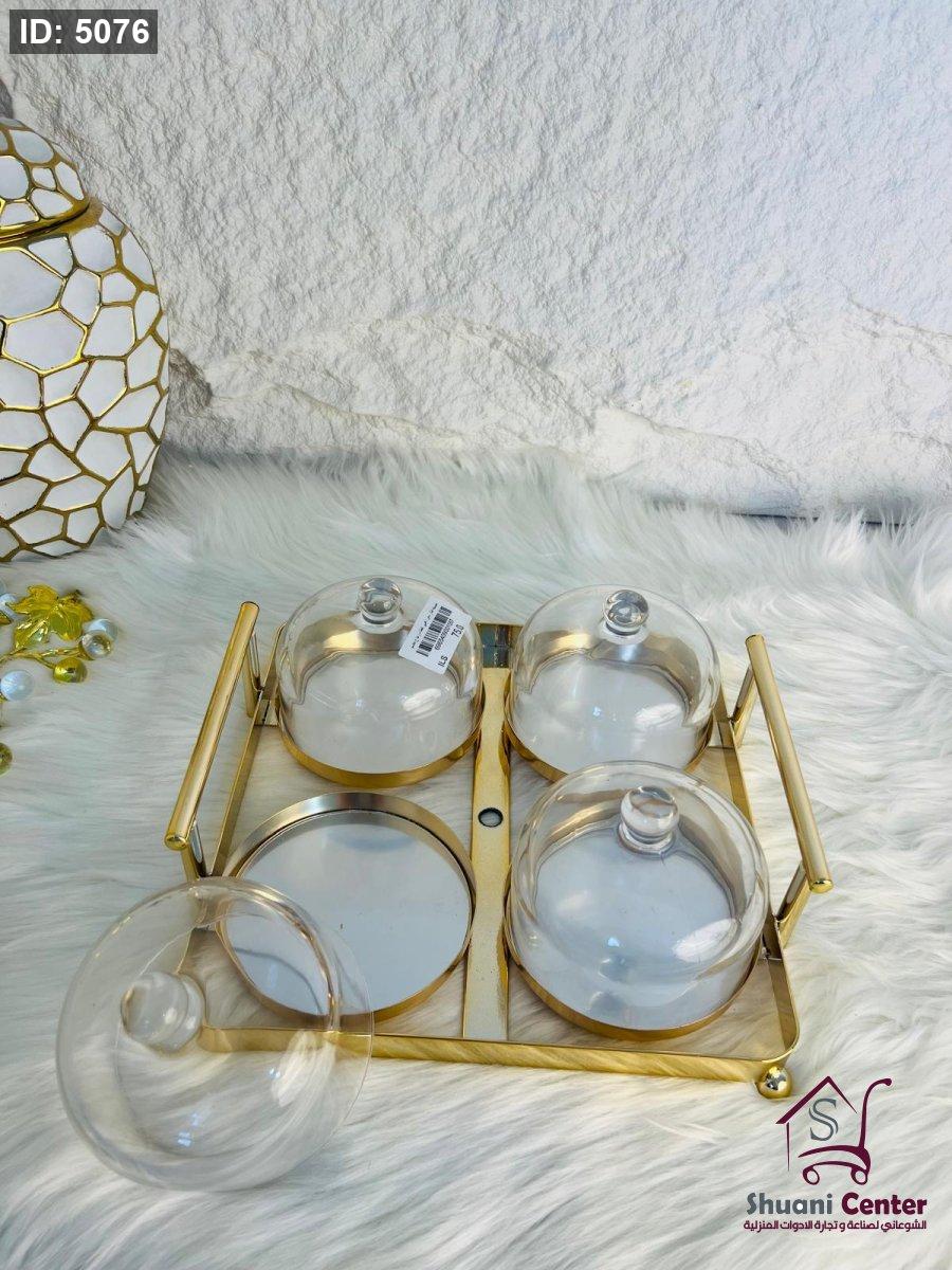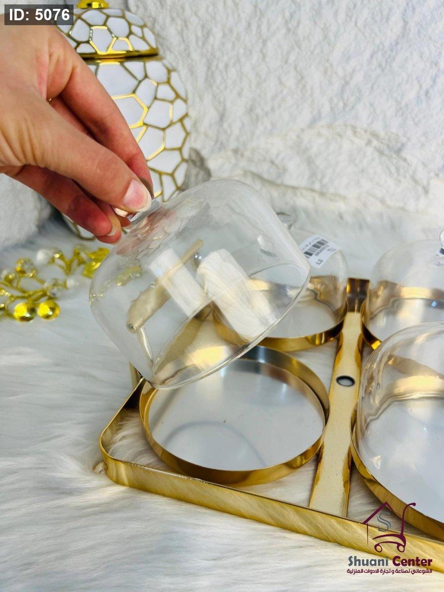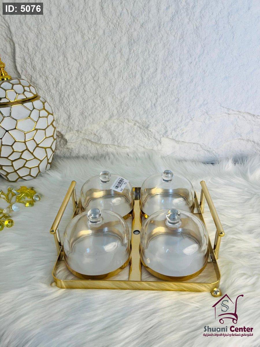 مضيفة ذهبية مكونة من 4وحدات بغطاء زجاجي ثقيلة وفخمة