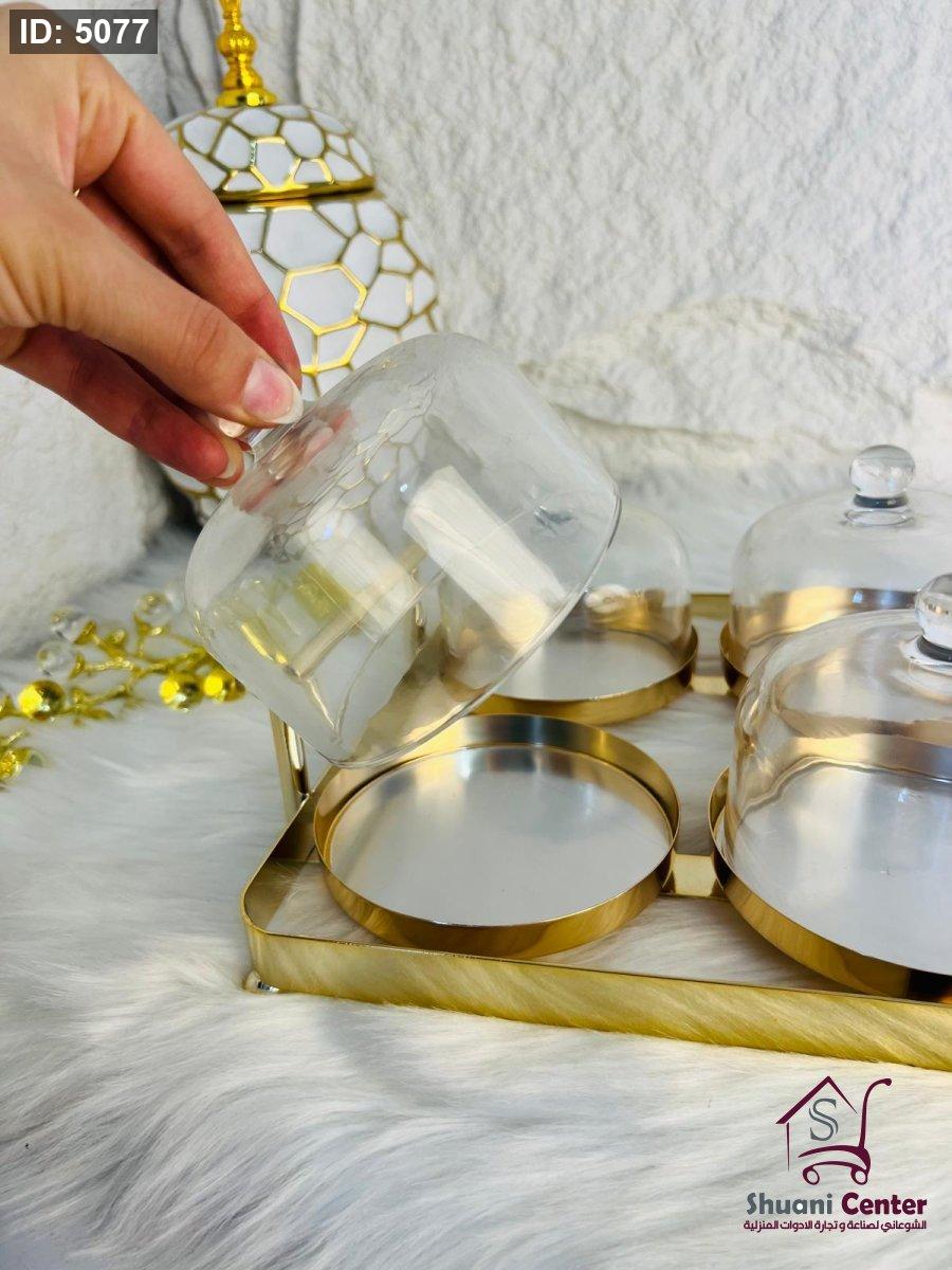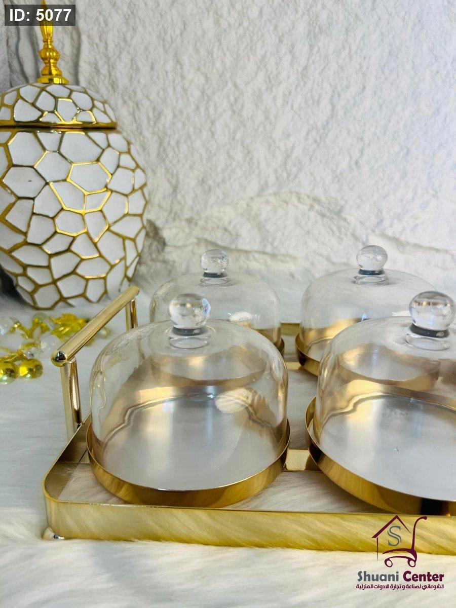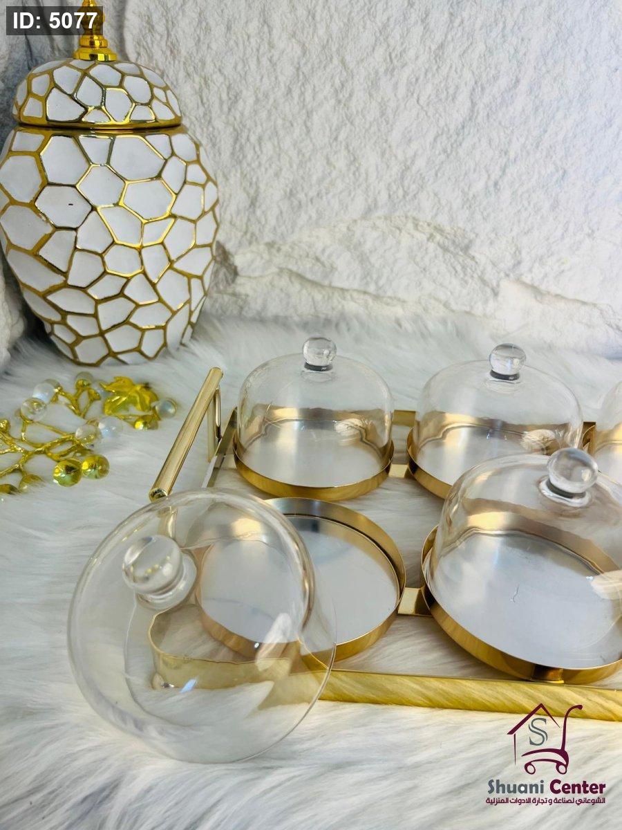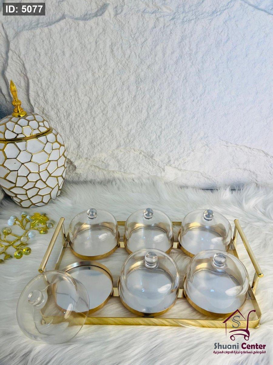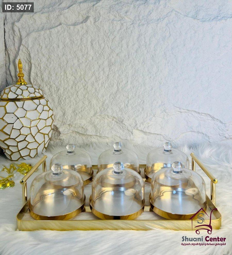 مضيفة ذهبية مكونة من 6وحدات بغطاء زجاجي ثقيلة وفخمة