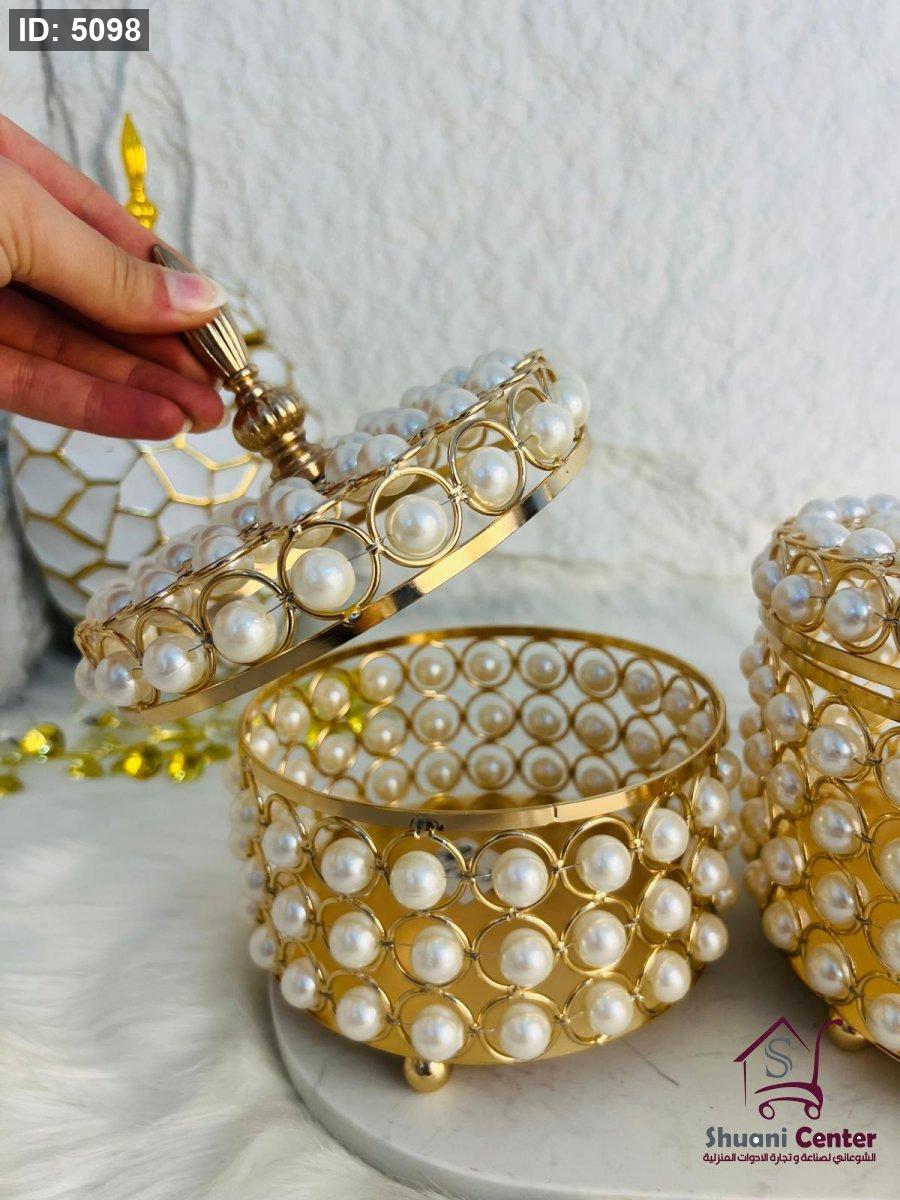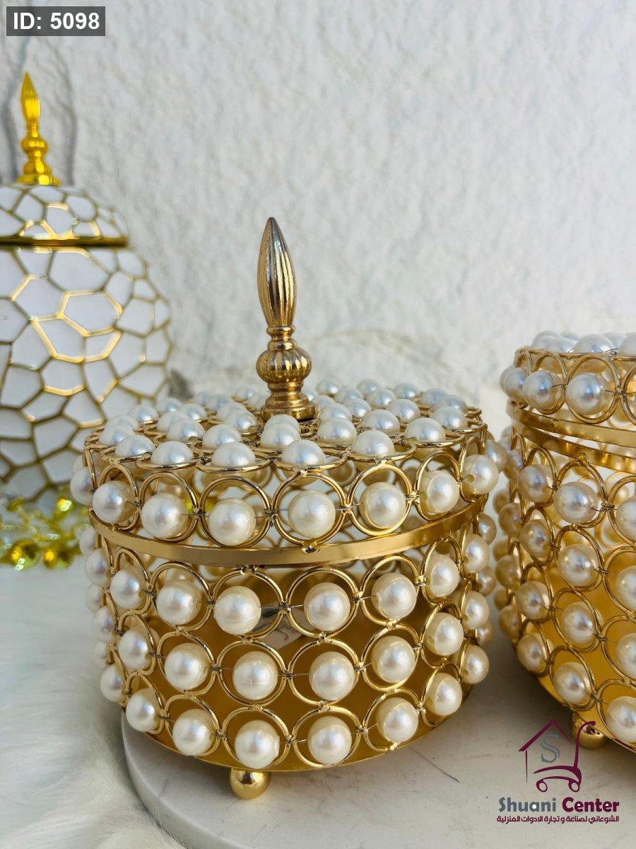 مضيفة ذهبية متداخل اللولو فيها بطريقة عصرية ومبتكرة لاصحاب الذوق العالي