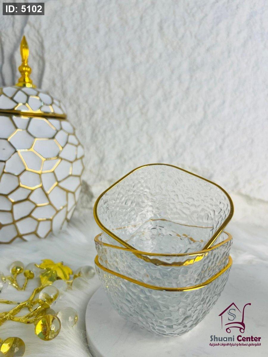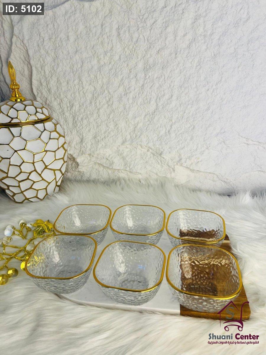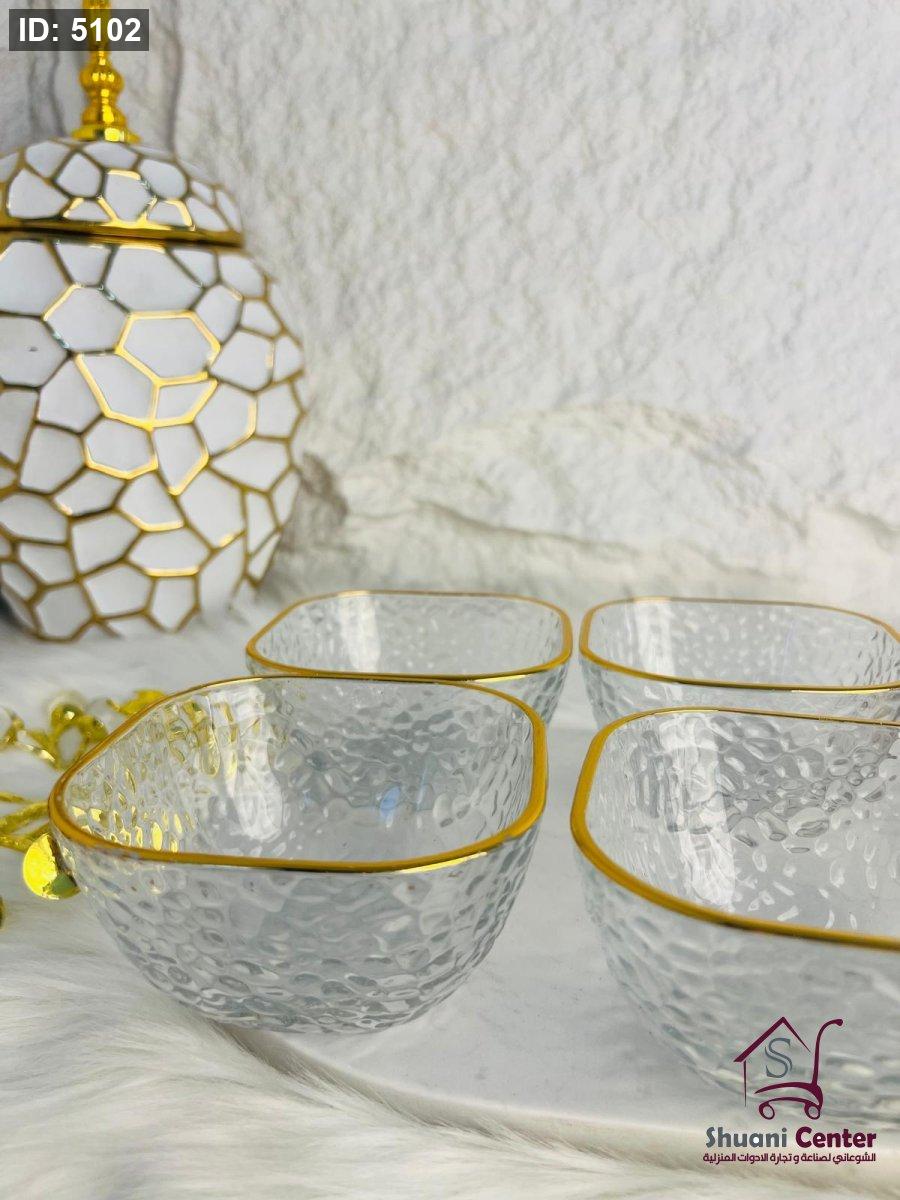طقم صحون مكسرات حز ذهبي