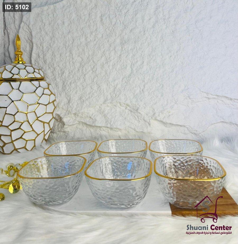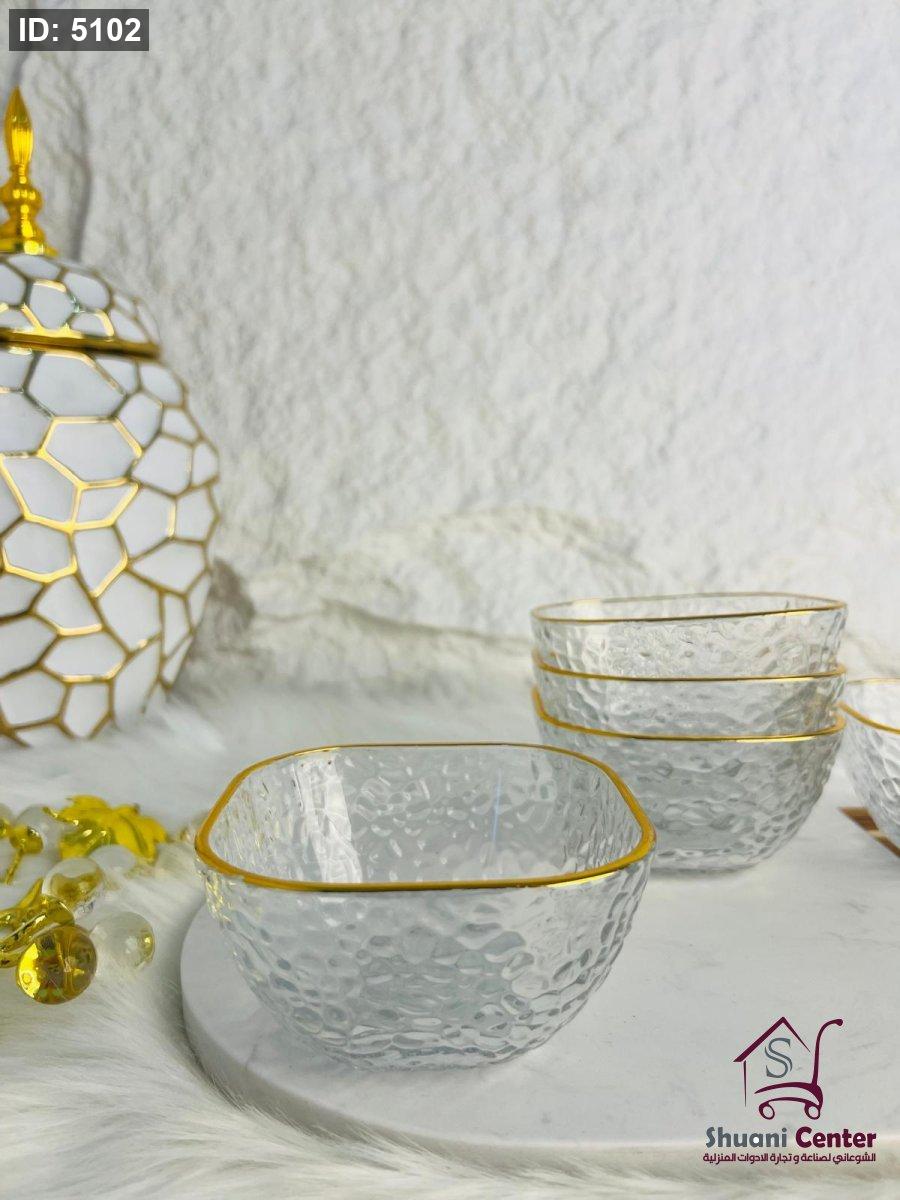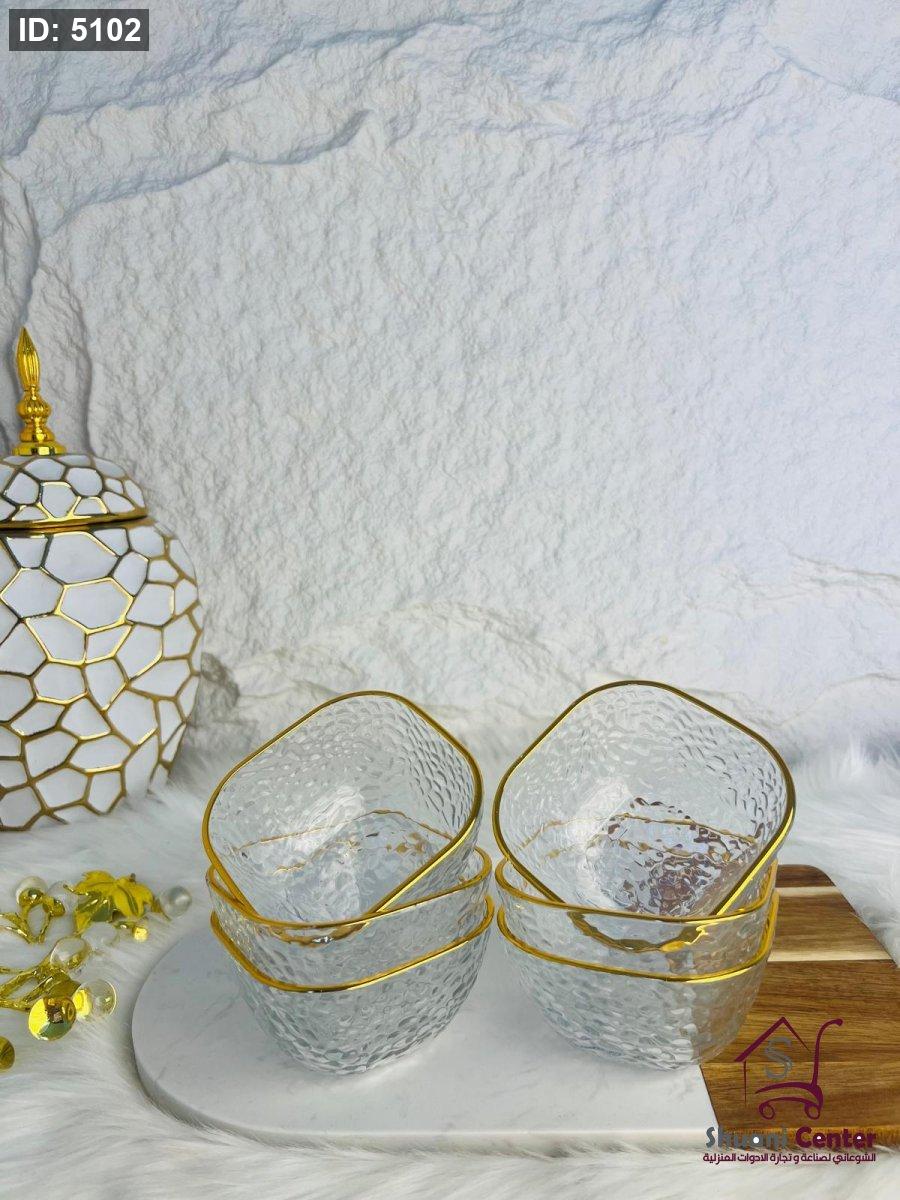طقم صحون مكسرات حز ذهبي