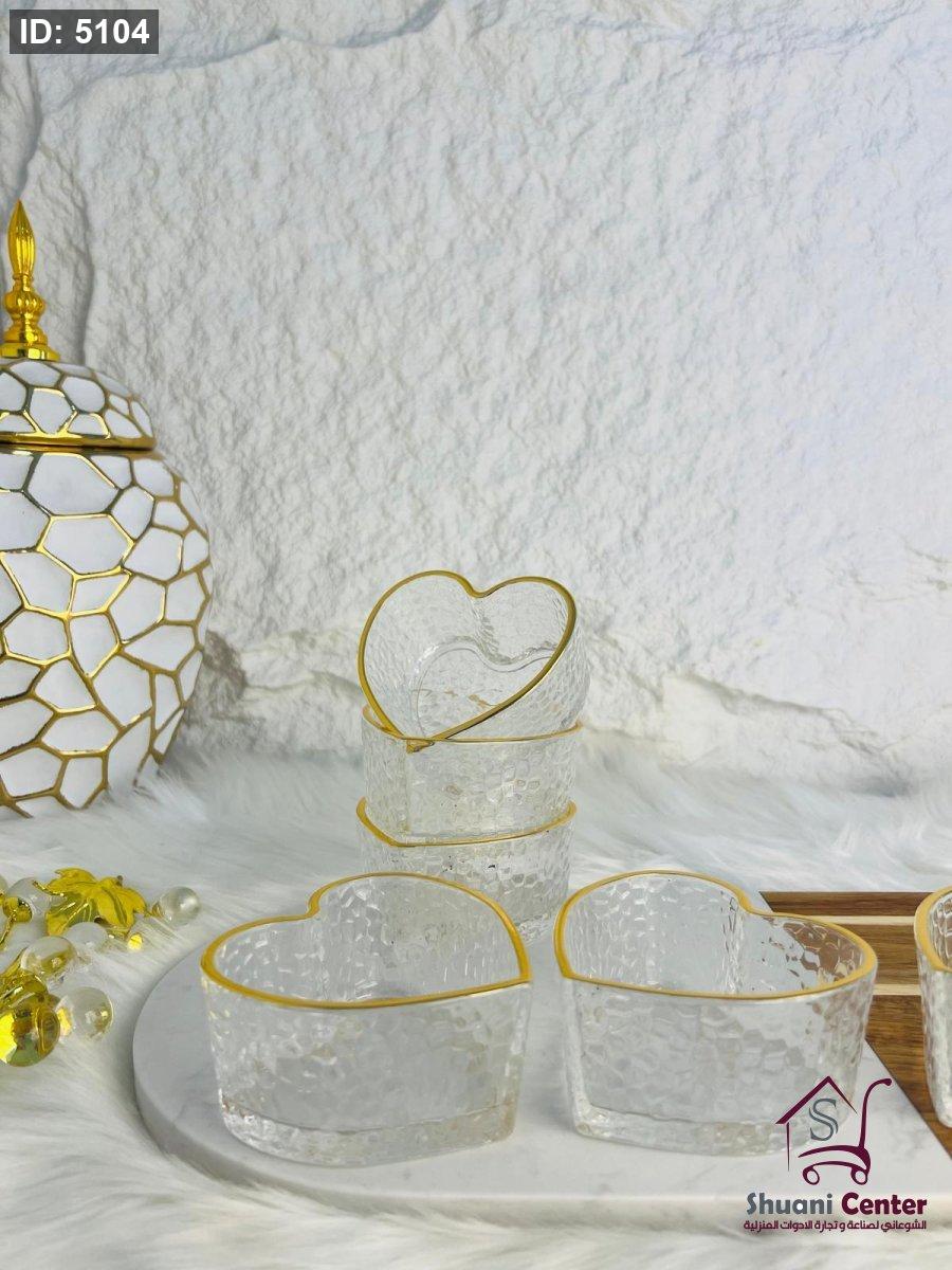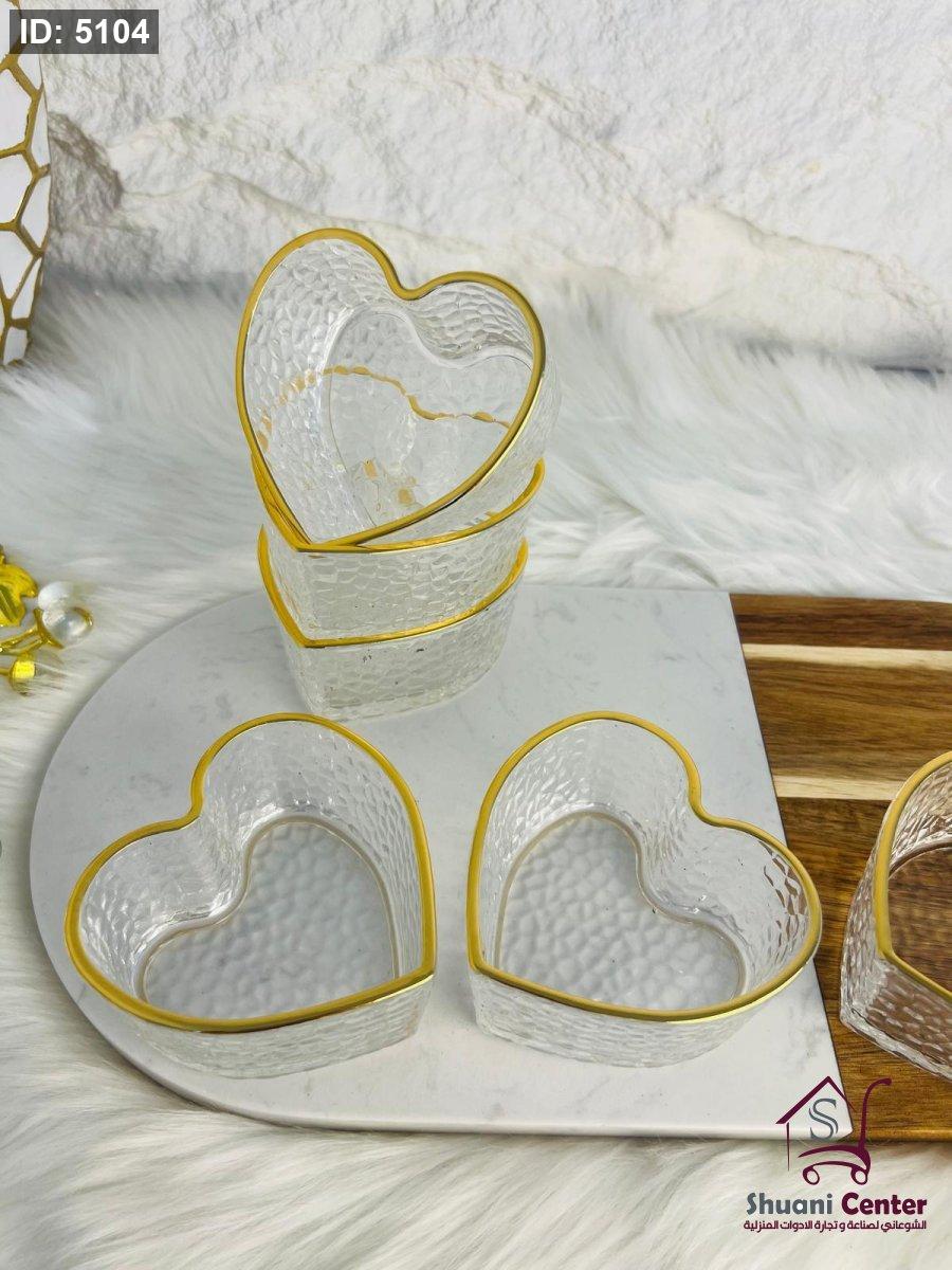 طقم صحون مكسرات شكل قلب خز ذهبي
