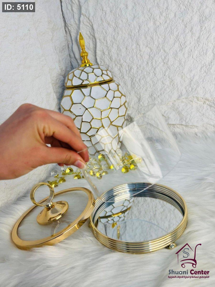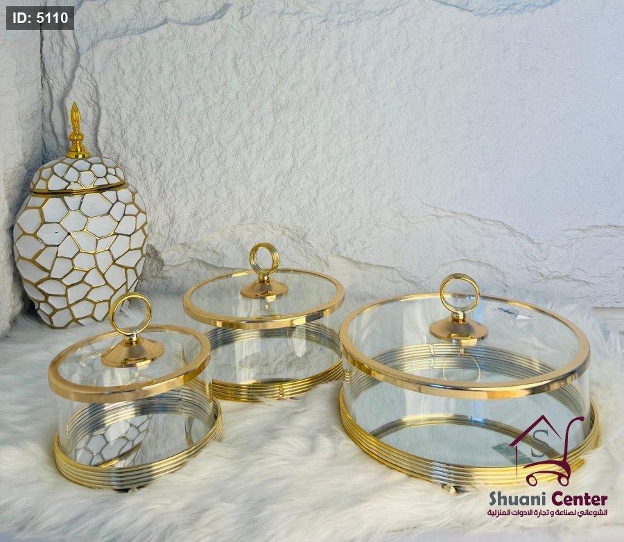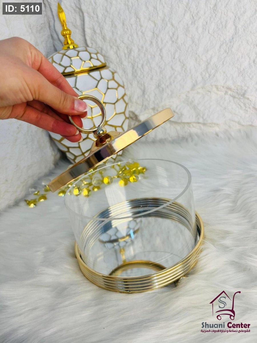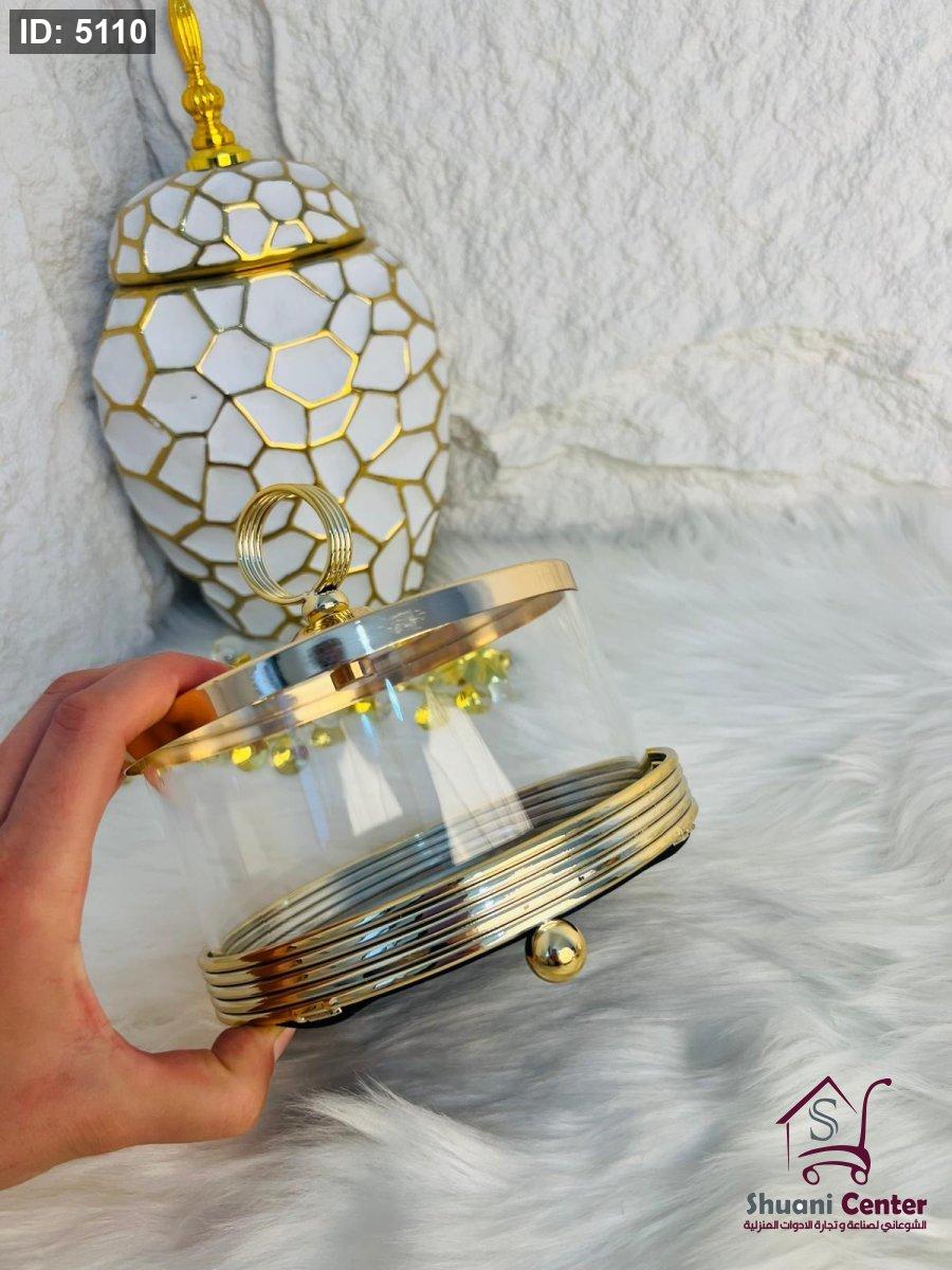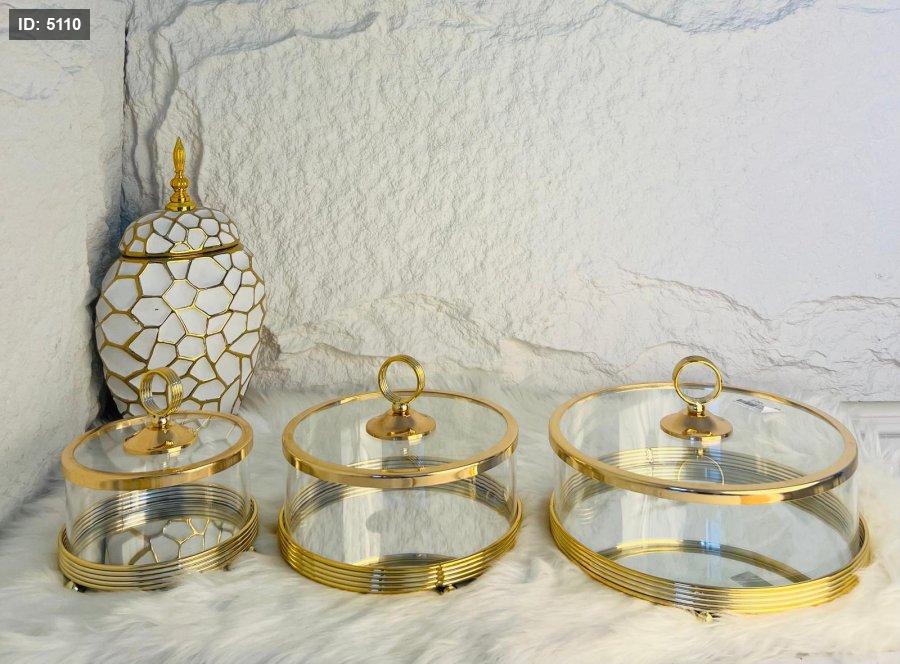 طقم مضايف اطار اكروليك ذهبي بغطاء