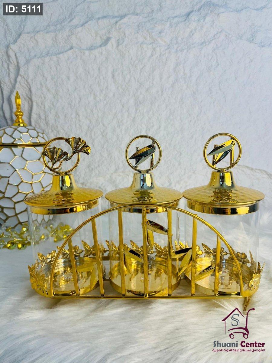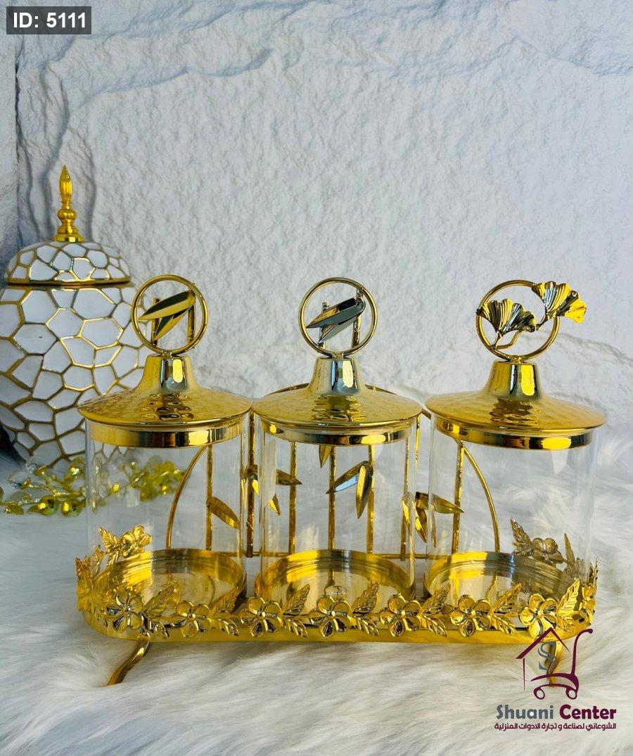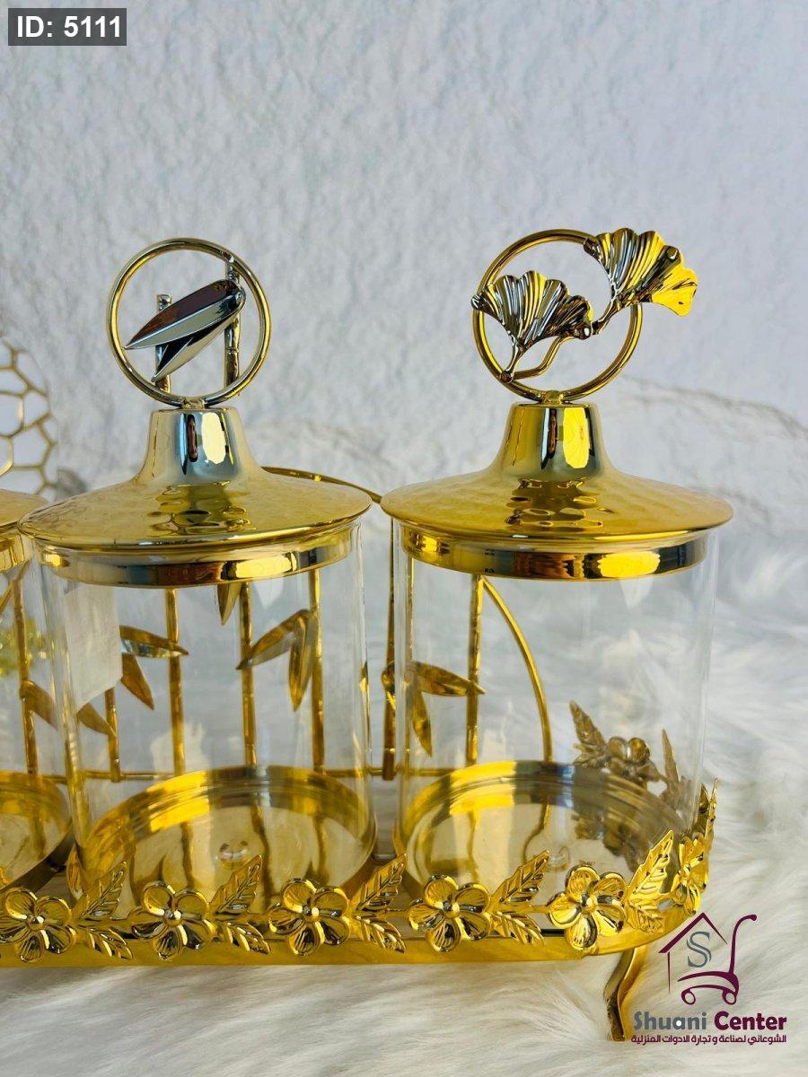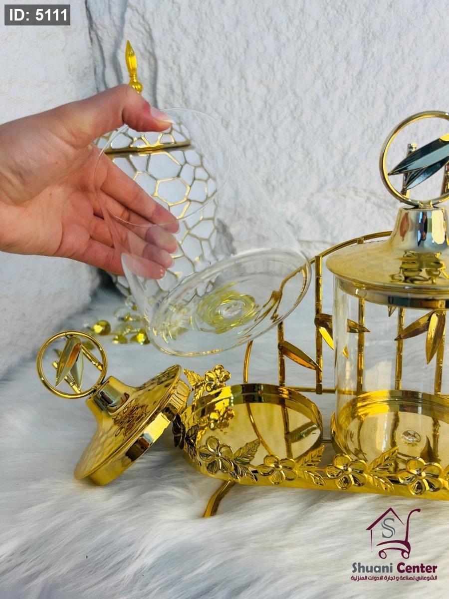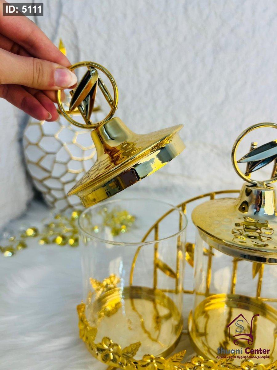 طقم مضايف ذهبي مع غطاء