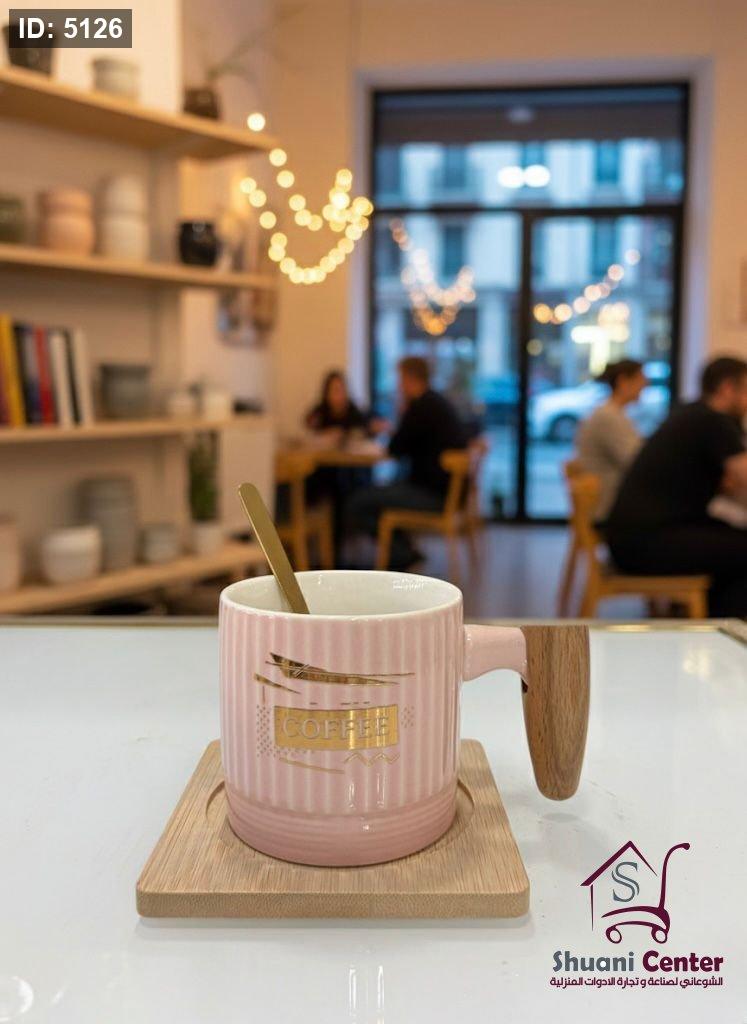 مج صحن خشب مع معلقة