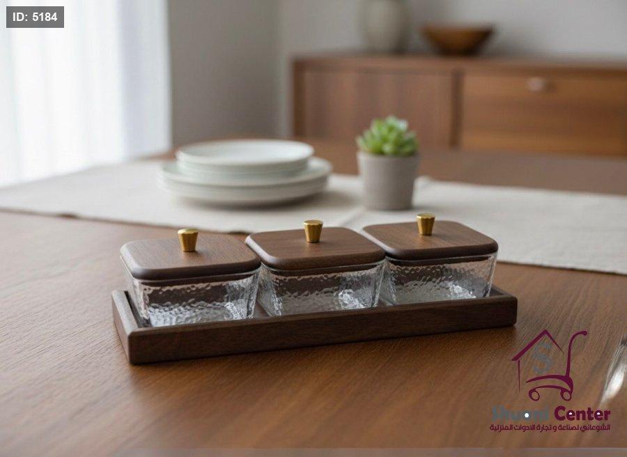 طقم مضيفة مستطيل 3 قطع غطاء خشب