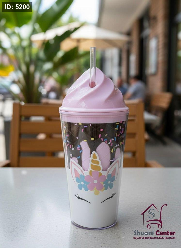 كاسة مع مصاصة على شكل ايس كريم بلون الزهري