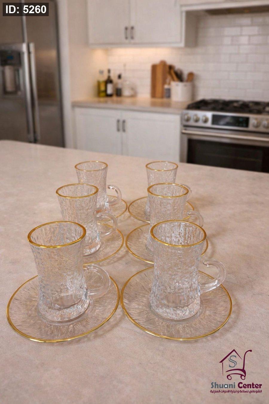 طقم كاسات شاي تركي فاخر بحافة ذهب