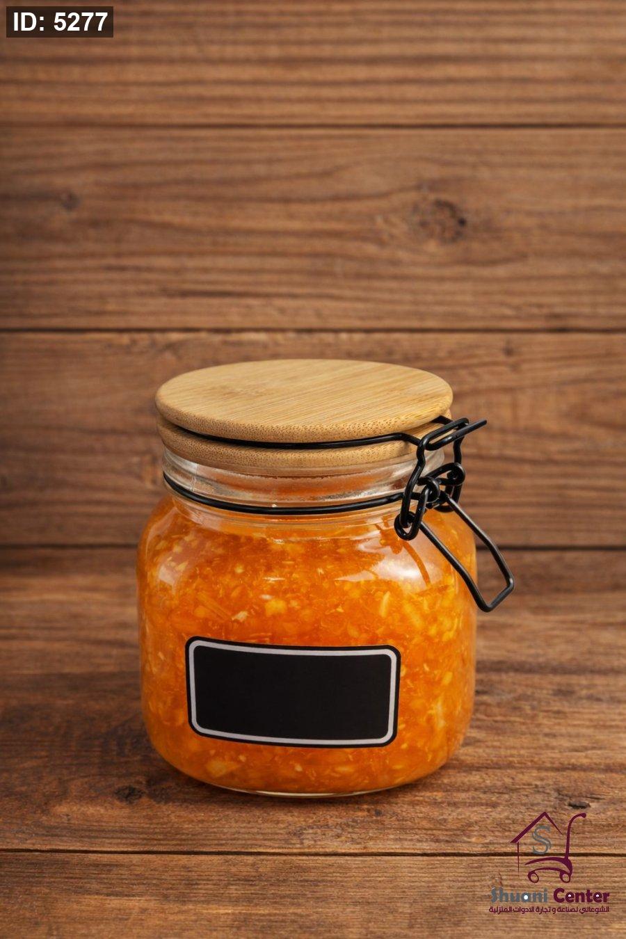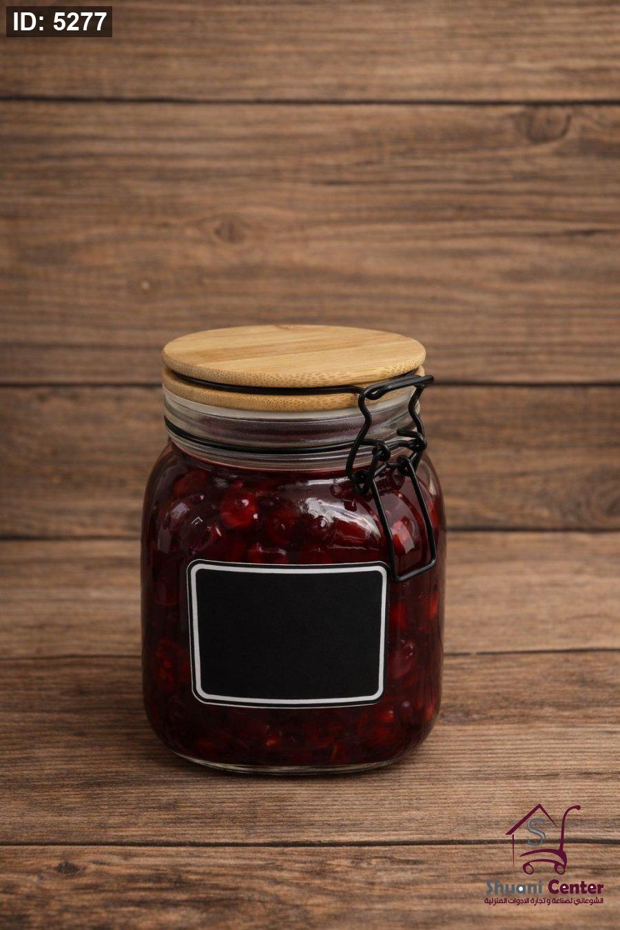 مرطبانات تخزين زجاج بغطاء خشبي مع قفل
