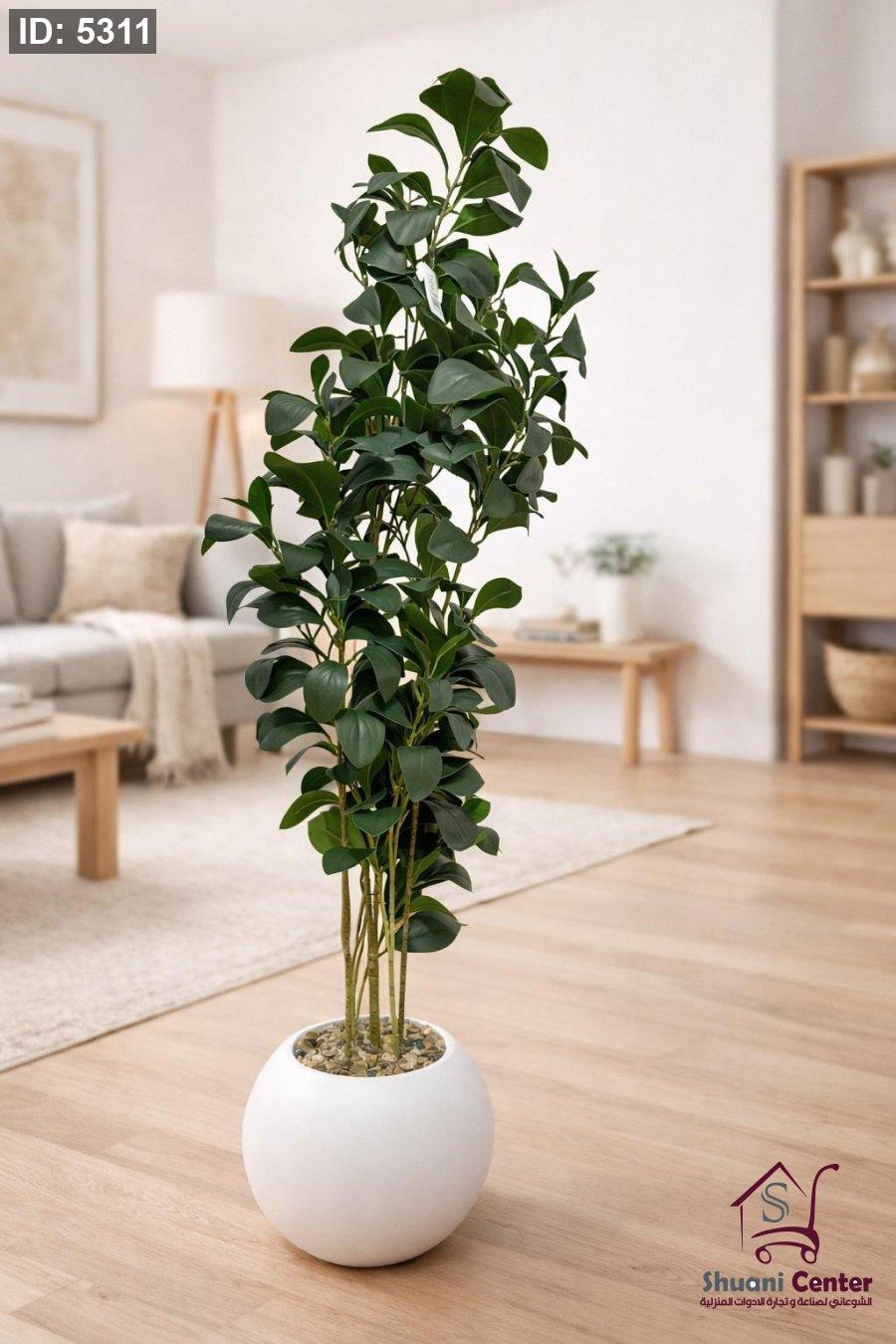 شجرة زينة صناعية في مركن أبيض